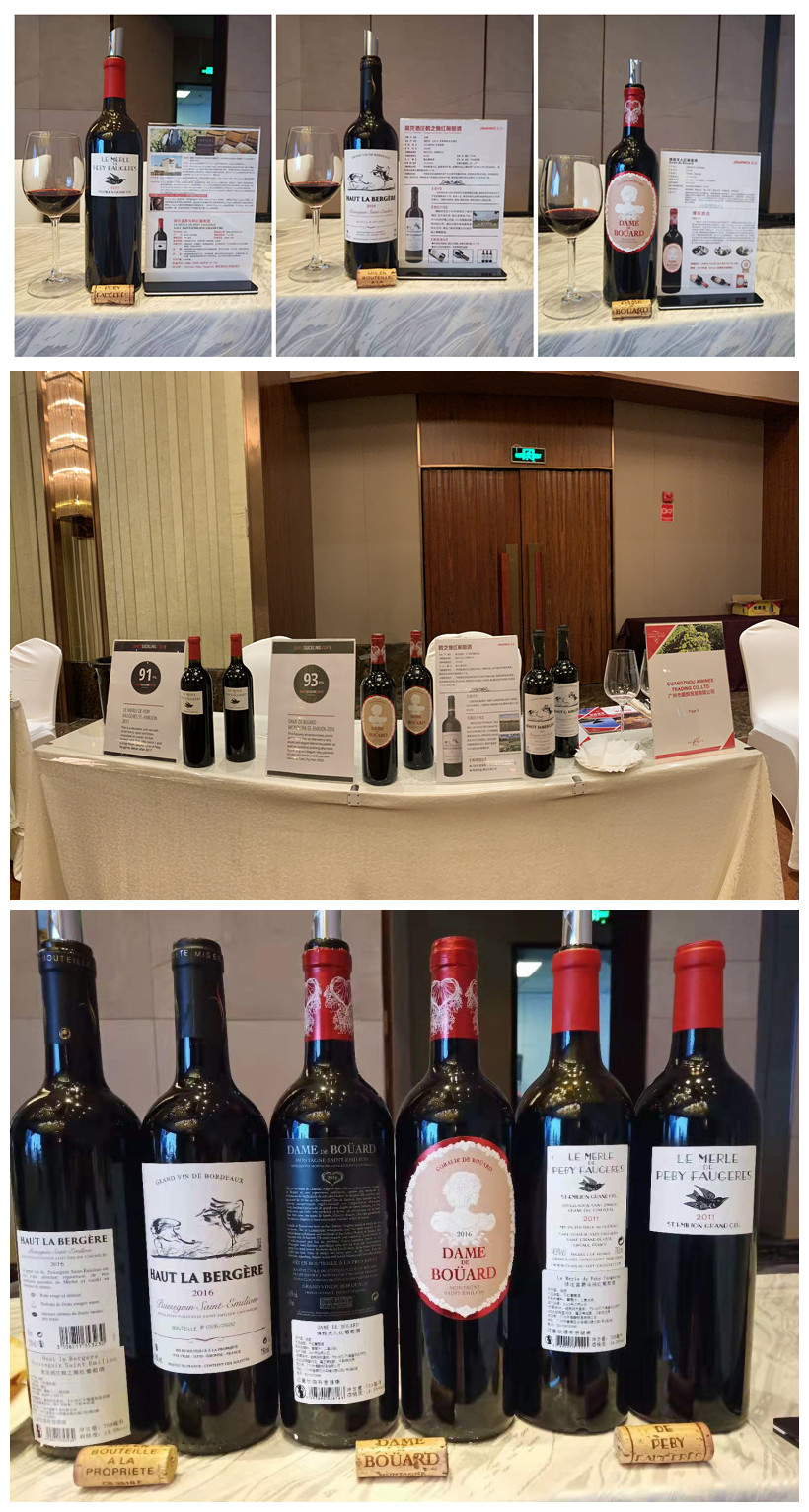 愛(ài)醇酒業(yè)此次攜帶圣埃美隆列級莊菲比富爵酒莊烏鶇紅葡萄酒、金鐘家族博雅酒夫人紅葡萄酒、奧龍酒莊鶴之舞紅葡萄酒三款酒參加了本次圣埃米利永-波美侯-弗龍薩克巡展。